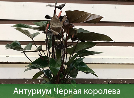 Домашний сорт антуриума, главное отличие которого в глянцевом кожистом черном покрывале. Вначале образуется темно-вишневый бутон, со временем темнеющий до почти черного оттенка. Початок эффектно выделяется на фоне темного покрывала.