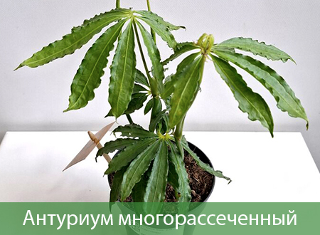 Декоративный лиственный сорт, который выглядит утонченной лианой. Листья рассеченные, сегментированные. У одного листа от 5 до 9 сегментов, длина листа достигает 13-15 см. Каждый сегмент имеет волнистый край, в ширину растет до 15 мм. Цветы невзрачные: светлые початки с маленьким зеленым покрывалом.