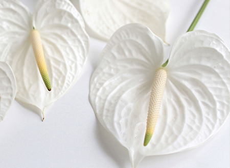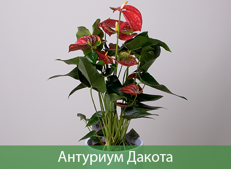 В переводе с греческого антуриум означает «anthos» – «цветок», «oura» – «хвост», что отражает строение цветка в виде початка, завернутого в лист-покрывало. Оттенок цветка может быть самым разным: белым, красным, синим и др. Кожистые листовые пластины в зависимости от сорта также отличаются по строению (целые или рассеченные), величине, окрасу. При надлежащем уходе антуриум может радовать цветением целый год.
